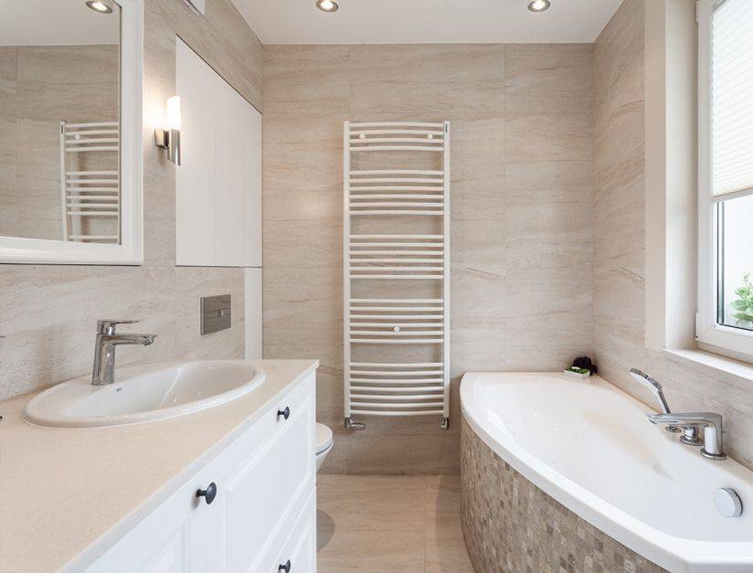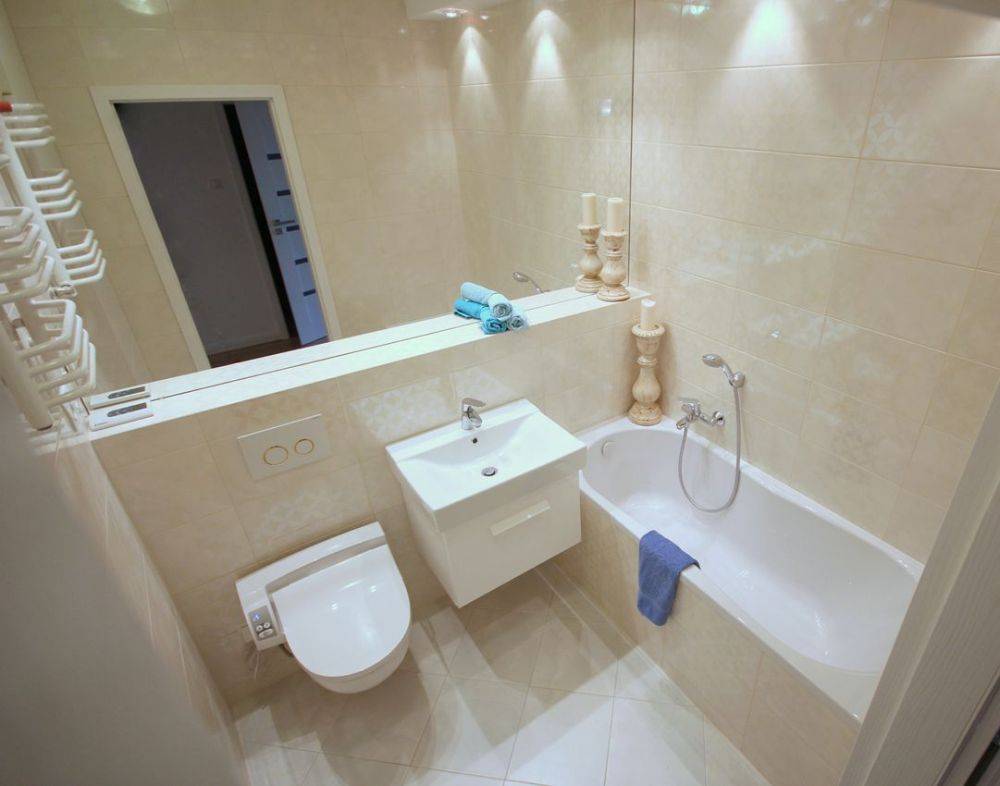 Бежевая плитка в ванной