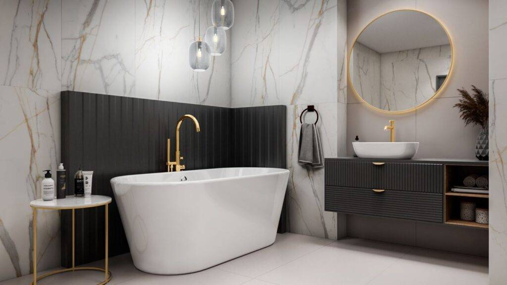- выбор центральной фигуры – в данном случае ванны – вокруг которой строится интерьер;
