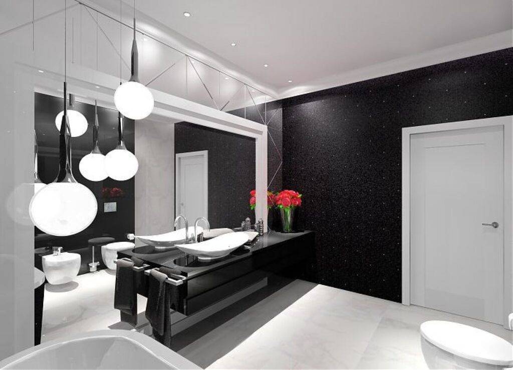 Очень часто дизайнеры используют контрастные цветовые сочетания, например, тёмная мебель и светлая сантехника, чёрно-белая плитка на полу, яркие элементы декора.