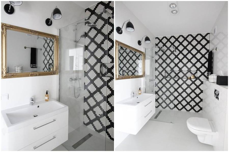 Черно-белая гамма позволяет это сделать. Можно сделать рамку для черно-белого фото и повесить на стену над ванной или в другом подходящем для этого месте. Такой прием подчеркнет стиль помещения.