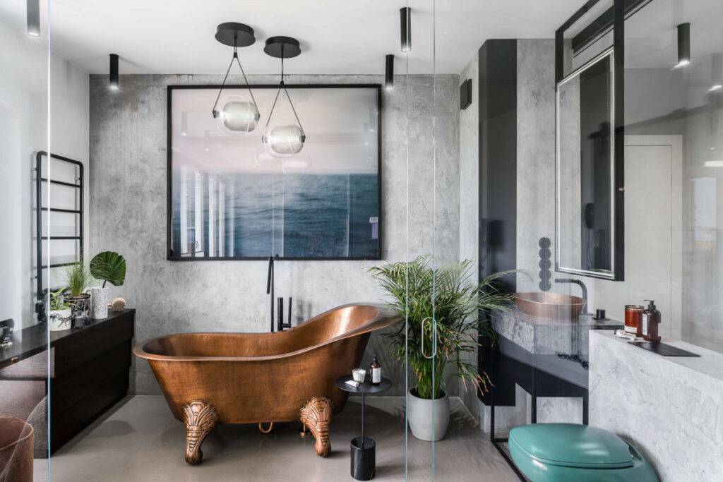 Ванная выполнена в нестандартном элегантном скандии стиле – натуральные материалы, гладкие поверхностиИсточник thearchitect.pro