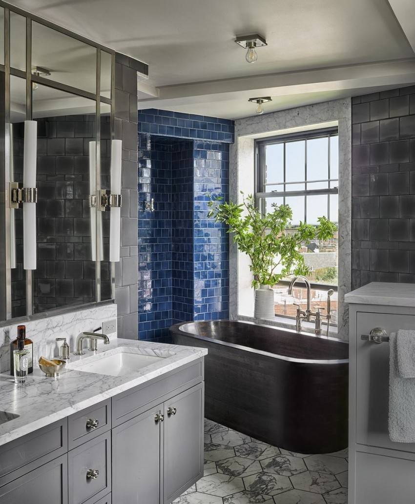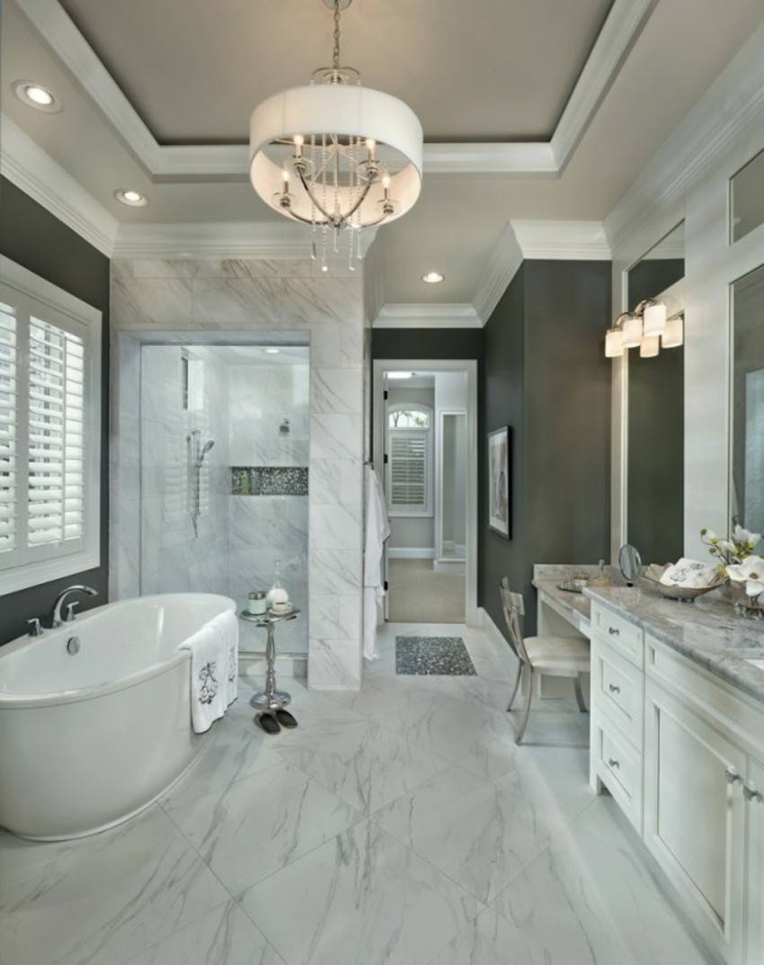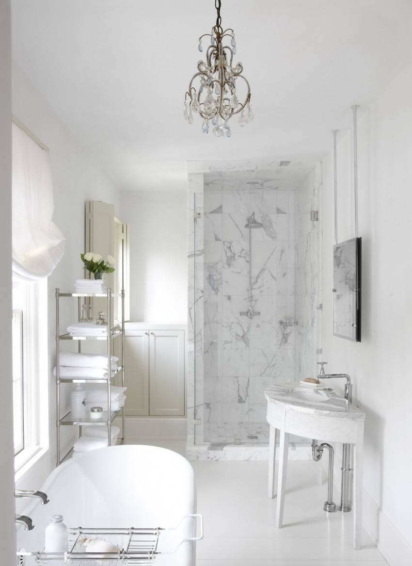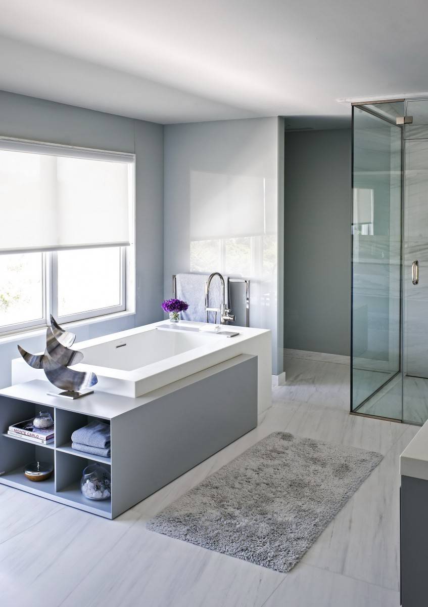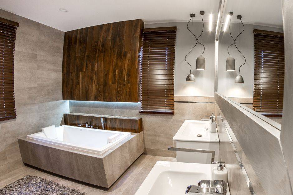 В случае большой ванной стоит выбрать отдельно стоящую ванну. Если размеры комнаты этого не позволяют, хорошей альтернативой станет ванна геометрической формы или современная стеклянная душевая кабина, желательно с гидромассажем или даже радио.