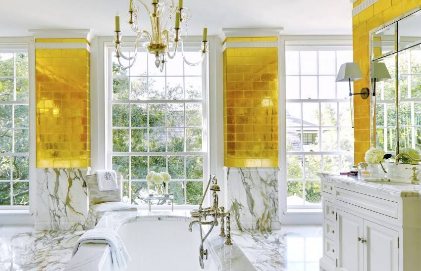 Классические ветви дизайна (классика, классицизм, неоклассика) узнаваемы по стремлению интерьера к дворцовой торжественности. Проекты предусматривают использование массивной деревянной мебели с резными ножками, обилие позолоты, наличие тяжелых штор на подхватах. Ключевыми элементами обустройства классического интерьера являются отдельно стоящая на золотых лапах ванна и массивная люстра с хрусталем либо свечами.