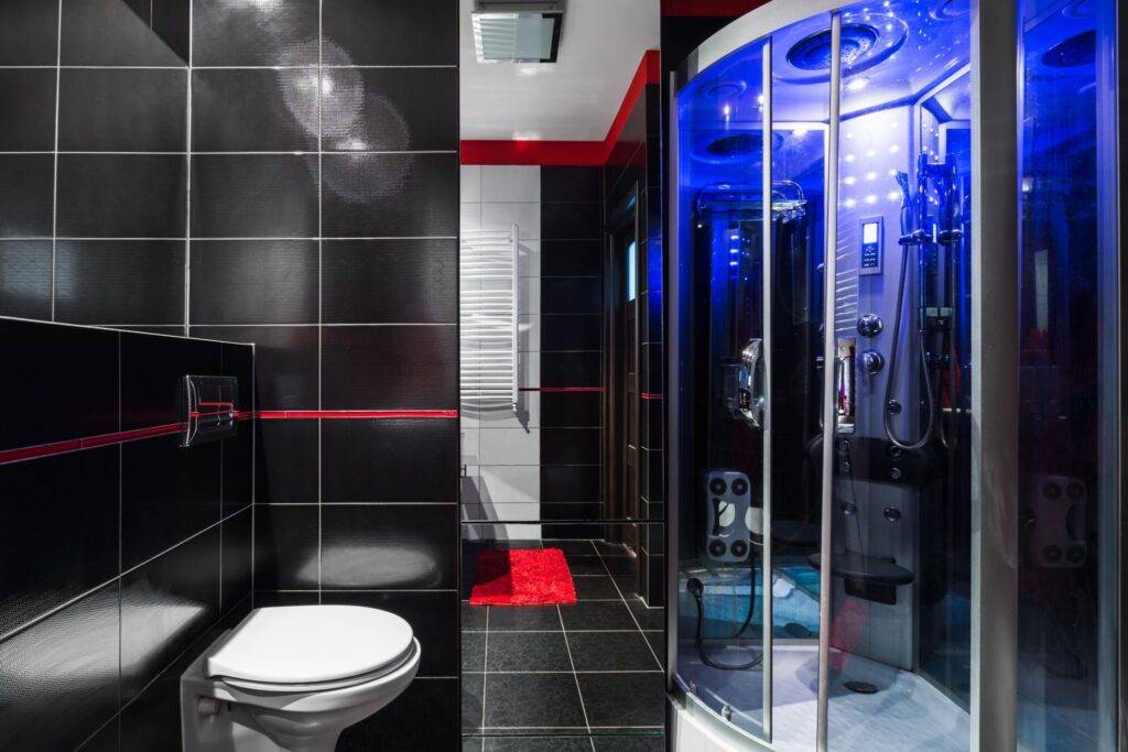 Принимая ванну или душ, можно заметить, сколько пара и конденсата выделяется в воздух. Все материалы для отделки требуется выбирать водонепроницаемые и устойчивые к перепадам температуры.