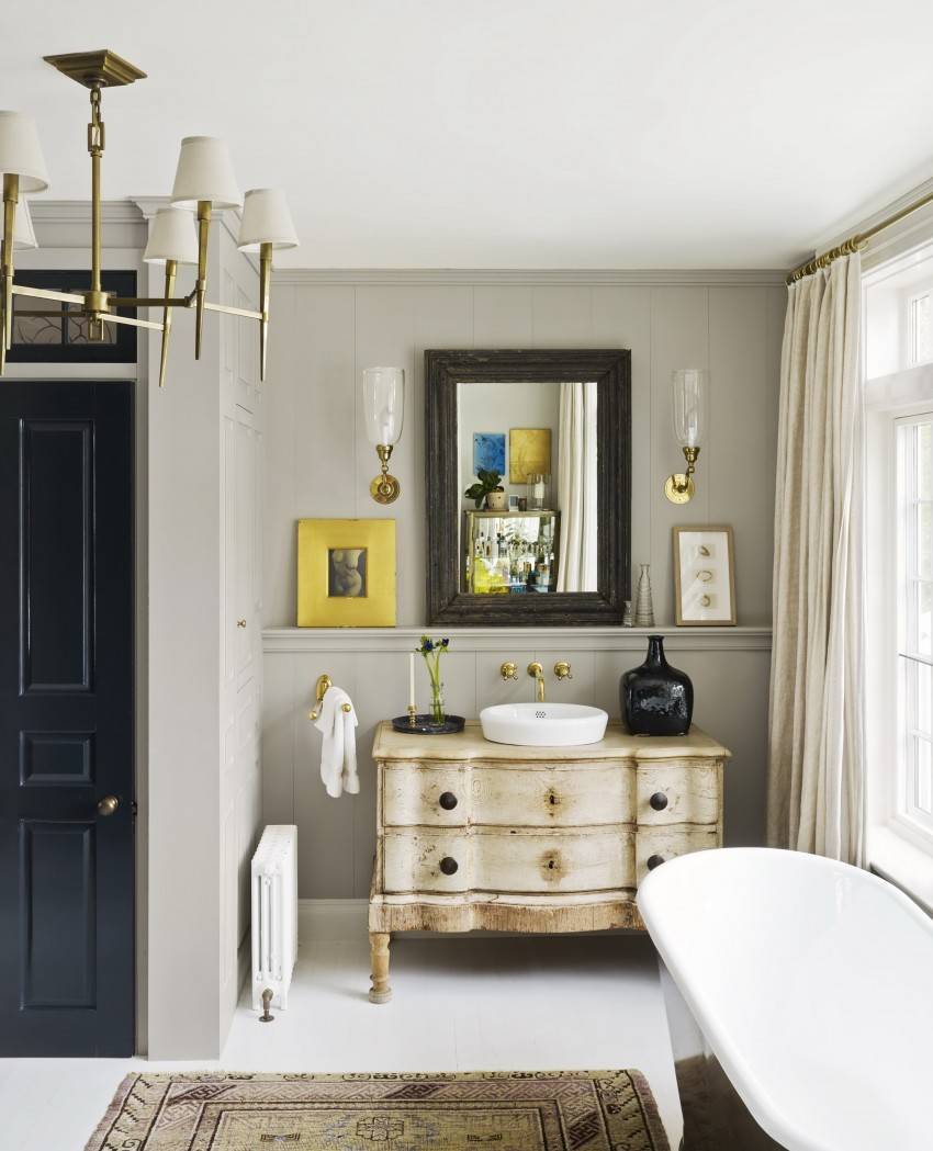 В большой ванной можно воплотить любое из винтажных направлений (ретро, винтаж, кантри, прованс). Все они нуждаются в просторе, их объединяет дух конкретных эпох, отсутствие современного эргономичного дизайна. Это налет старины, использование определенных материалов, маскировка стиральных машин дверцами напольных шкафов.