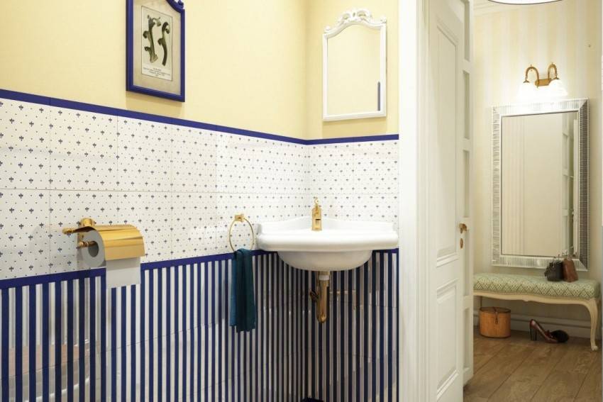 Стены могут быть просто оштукатурены и окрашены краской соответствующей палитры. При этом допустимо использование современных строительных материалов. Однако пластиковые панели и высокотехнологичные приборы и материалы будут смотреться здесь неуместно и оформление ванной назвать “провансом” будет уже неправильно.