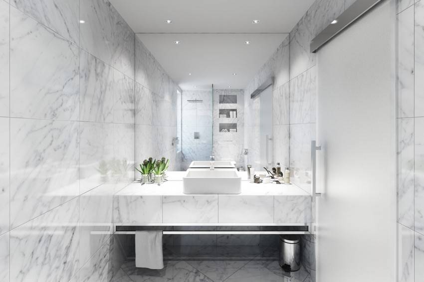 Модная тенденция в оформлении интерьеров ванной — отделка мрамором.