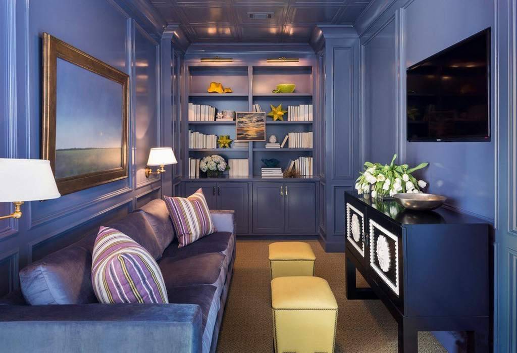 Визуально добавят несколько квадратных метров зеркала в шкафах. Не стоит использовать множество мелкого декора в гостиной – это будет «дробить» апартаменты. Как вариант можно использовать синий цвет для отделки поверхностей и декора. В таблице приведены оттенки, гармонизуемые с синими тонами.