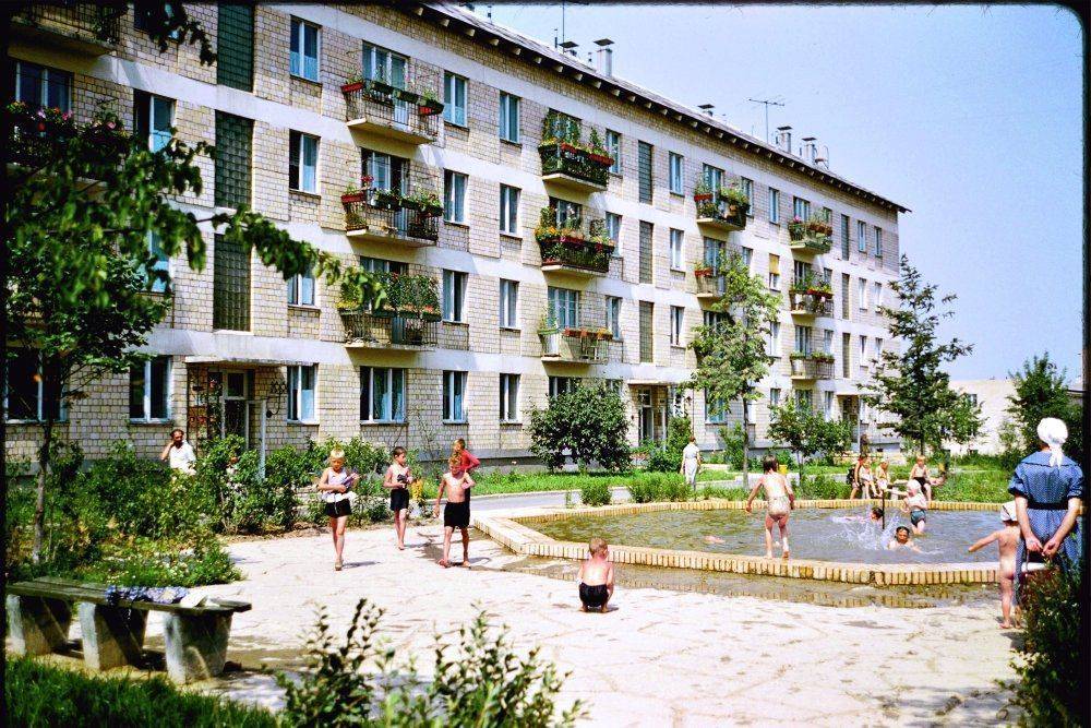 В попытке восполнить небольшую площадь квартир, большой акцент был сделан на просторные дворы. На площадках организовывали специальные зоны отдыха, игровые площадки, озеленение, бассейны для купания. Архитектурное планирование микрорайонов исключало любое сквозное движение, в каждом блоке был свой детский сад, школа, столовые, магазины, кинотеатры, телефонные станции и гаражи.