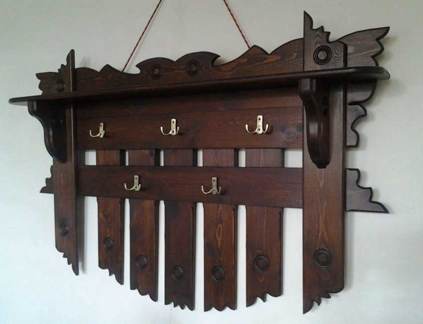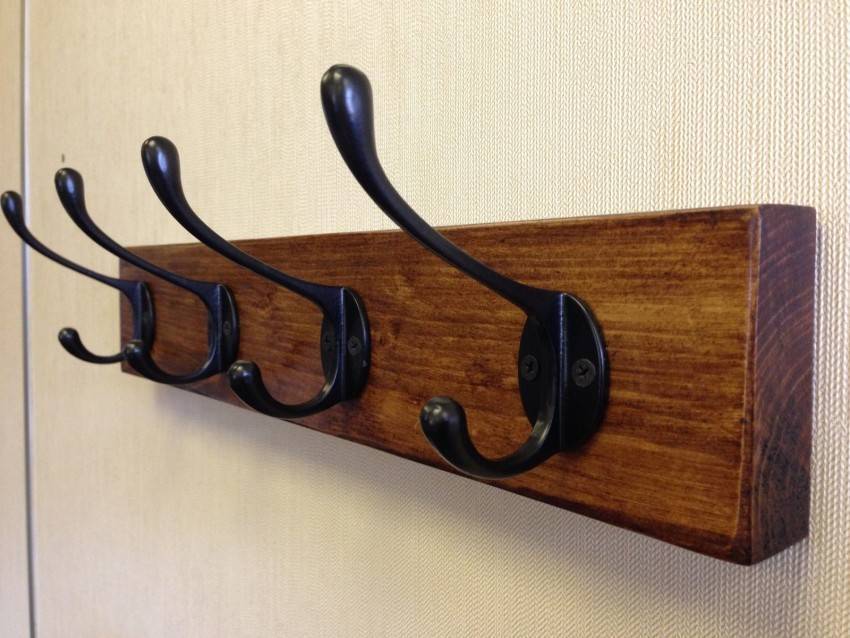 Очень важно для долговечности и эстетической привлекательности изделия лак наносить в три слоя. Что же касается крючков для настенной вешалки, так они могут быть, как из стали, так и из дерева. Так само, они могут изготавливаться самостоятельно и покупаться в магазине