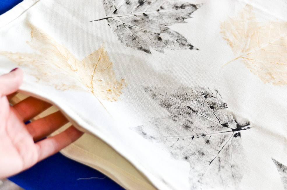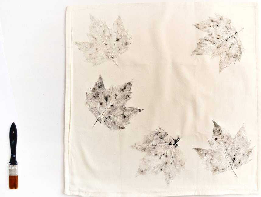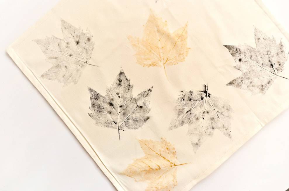 При необходимости гладим чехол для подушки, чтобы избавиться от лишних складок и заломов. На рабочую поверхность кладем простой лист бумаги, а сверху осенний лист.