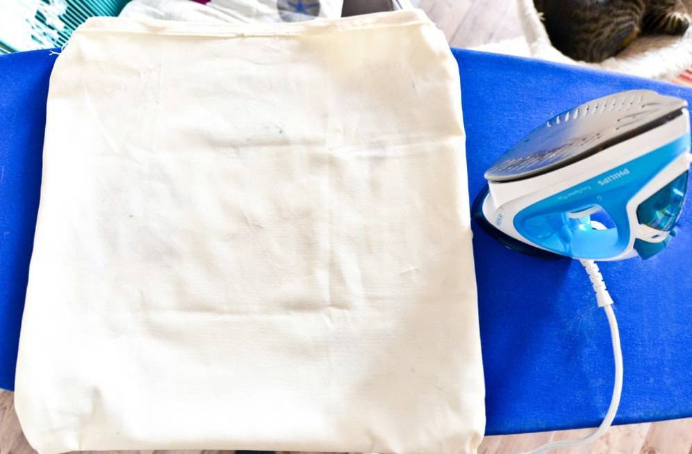 Выворачиваем чехол и нагреваем утюг до средней температуры.