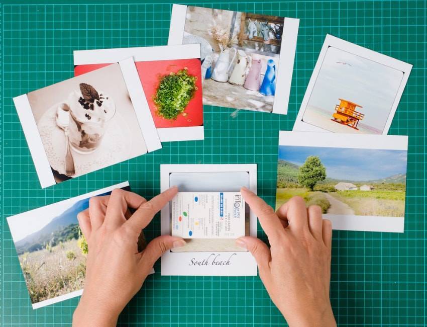 Для начала подготовим фотографии. Можно изначально распечатать их в необходимом размере. В этом примере возьмем фотографии и обрежем их до размера визитки.