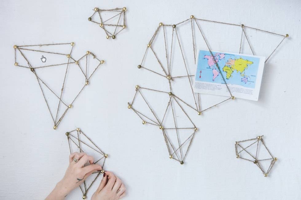 На карте мира делаем схематические пометки, где будут располагаться гвоздики.