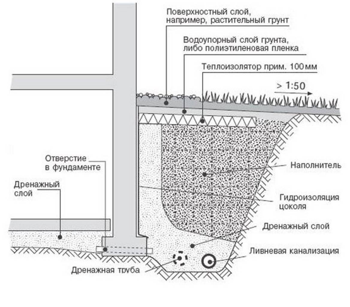 Особенно это важно для плитных и полноформатных ленточных фундаментов. Чем глубже установлен фундамент, тем больше площадь соприкосновения с влажным грунтом;
