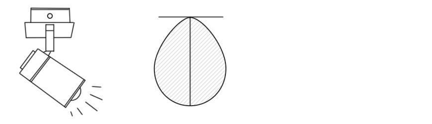 На подвесном или натяжном потолке размещенные точечные светильники освещают небольшой участок. Угол рассеивания не превышает 30. Поэтому эти приборы следует размещать плотно друг к другу. Потоки света имеют форму конуса, это значит, что они должны пересечься на одном уровне, находящегося выше всех предметов и мебели.