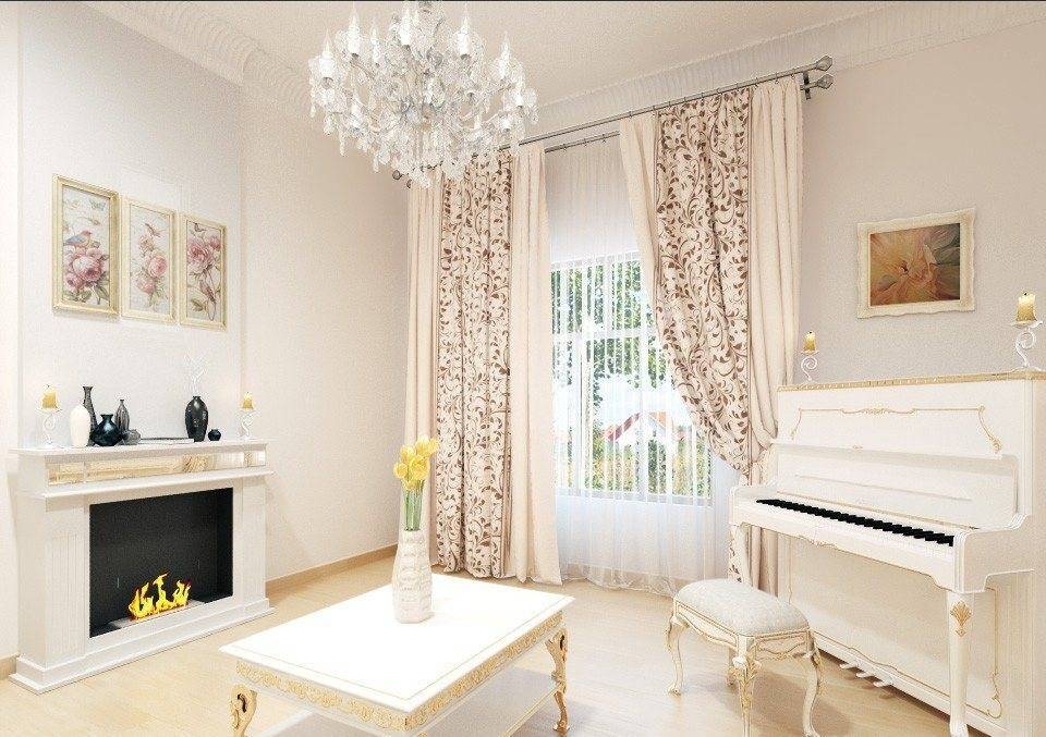 В классическом стиле используются ламбрекены, подвязки и подхваты, бахрома, бусины и другие декоративные элементы, которые позволят придать шторам в интерьере гостиной оригинальность и неповторимость.