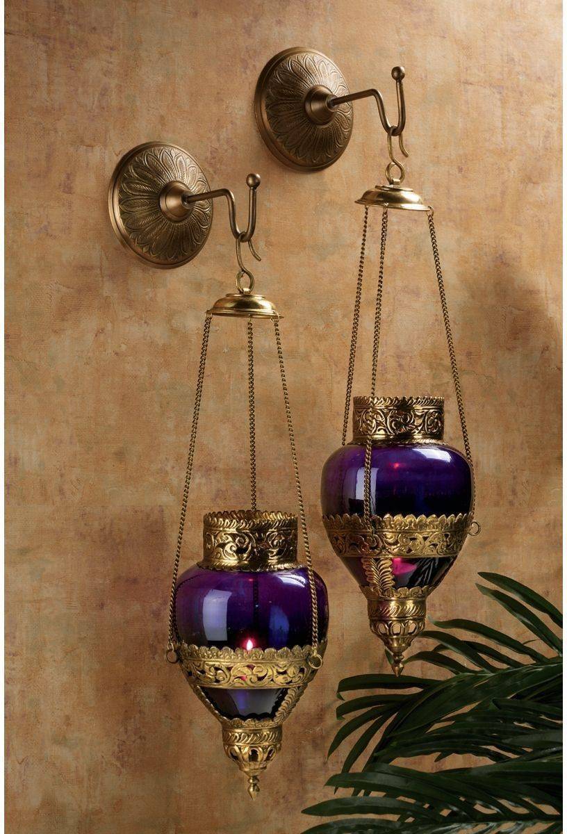Для светильников в арабском стиле характерно использование цветного стекла и кованного металла. Когда внутри присутствует источник света, они отбрасывают на стены, мебель и пол красочные блики, создавая ощущение сказки.