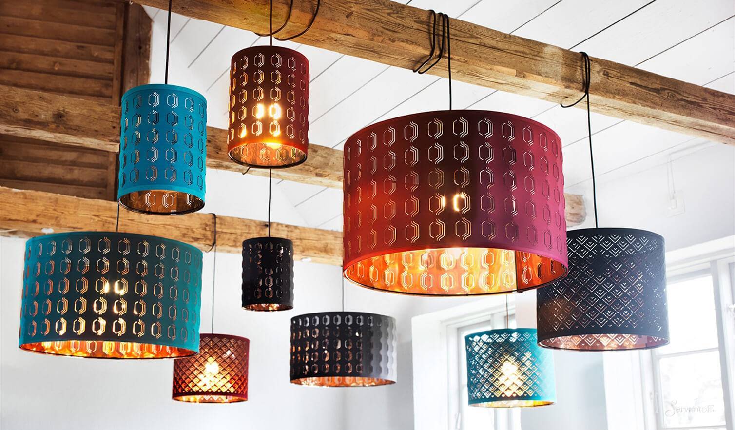 Светильники можно разделить на индийские (обычно темно-коричневые с желтым или белым стеклом), марокканские (ажурные металлические без стекла), турецкие (металлические с разноцветной мозаикой), стеклянные (из дутого стекла, обычно очень большие напольные или настольные, будто вазы), средиземноморские (кованые, изогнутые).