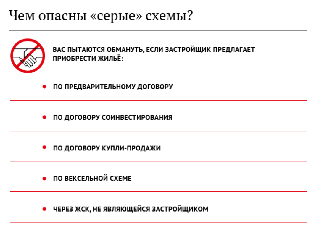 Главное, постарайтесь избегать успешных застройщиков – слышите, что кто-то завершил десять проектов и планирует ещё пять, избегайте его. Как от огня бегите от проектов застройщиков, которых поддерживает государство. Читая список инвесторов и подрядчиков, убедитесь, что там нет фирм, известных на всю страну.