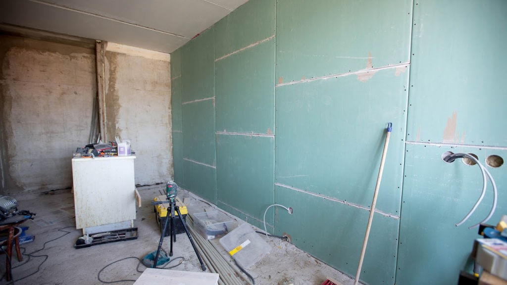 Как только закончен монтаж ГКЛ, остается заделать швы и прошпаклевать поверхность.
