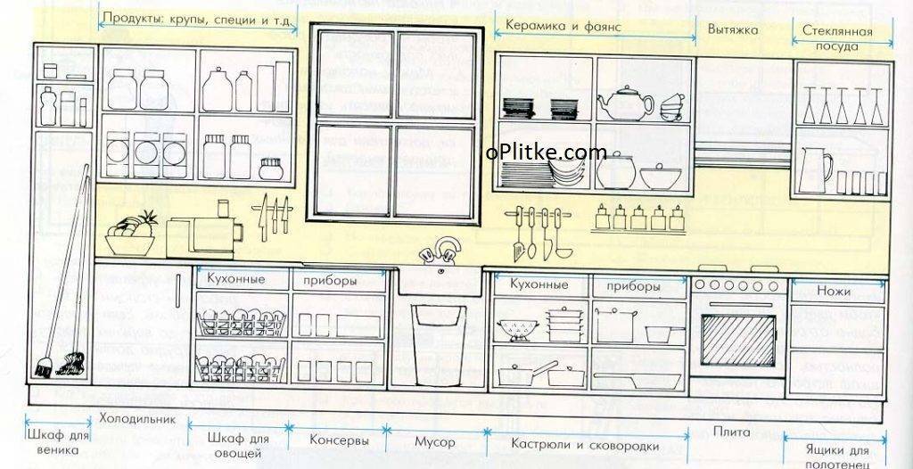 Рост хозяйки кухни – в идеале этот показатель должен быть главным параметром, так как именно удобство работы определяет функциональность рабочего помещения
