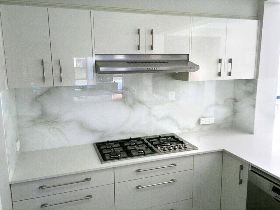- Вид материала фартука, так как стеклянный монтируется уже после установки мебельного набора. Это дает возможность выстроить верх кухонных шкафчиков, исходя из удобства пользования;