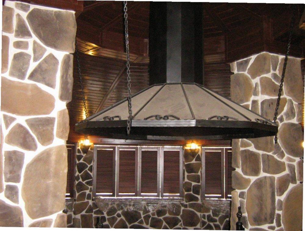 Многих интересует, как крепится такая вытяжка. Это можно сделать либо при помощи стоек, либо воспользоваться подвесами. Первые изготавливают из кирпича или из железа. Также можно добавить интересный железный элемент – массивные цепи, на которых будет крепиться вытяжка.