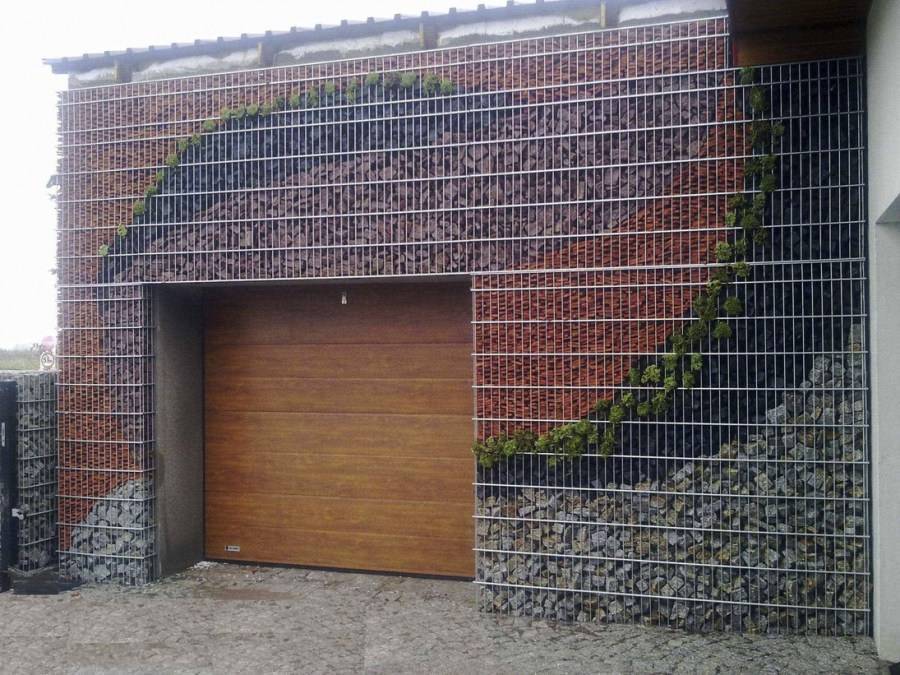 В габионах могут использовать как все виды каркаса, так и отдельные детали. Модули часто комбинируют с кованными или профильными воротами и калитками. Правильно подобранная композиция станет ярким элементом ландшафтного дизайна.
