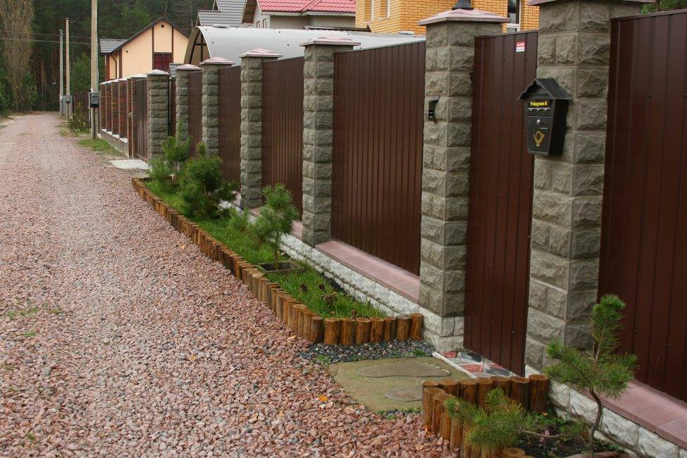 Преимущества такого вида забора – возможность использования различного кирпича по цвету и фактуре, что придаст забору привлекательный вид и индивидуальность.