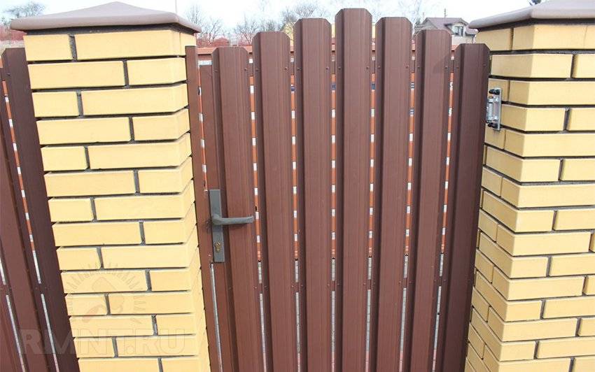 - металлические планки (штакетник) — форма профиля и толщина планок, их количество подбирается индивидуально в зависимости от типа будущей конструкции. Если планируется глухое ограждение, планок придется приобрести вдвое больше;