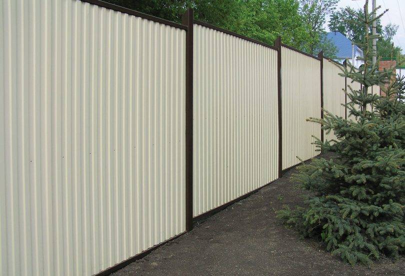 Для возведения забора можно выбрать как специальный лист (профлист), так и универсальный.