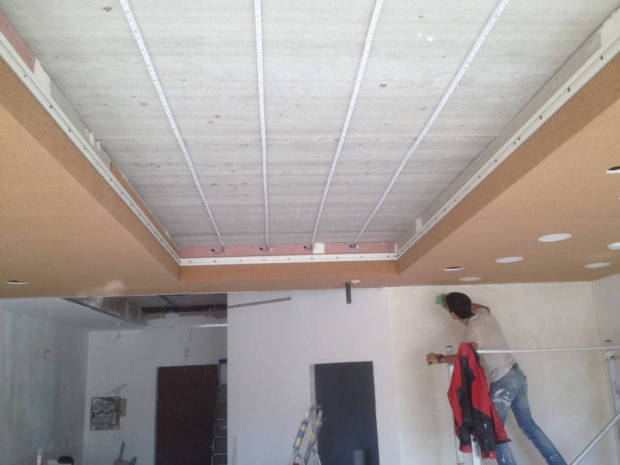 Второй ярус с козырьком, в котором укладывают световые шнуры или светильники. Первый уровень – подготовленный базовый потолок, второй – гипсокартон с вмонтированными светильниками. На выносе второго уровня установлена скрытая подсветка, дающая рассеянный мягкий свет. Такая конструкция позволяет, выключив точечные (основные) светильники, получить ненавязчивое приглушенное освещение, создающее в комнате романтическую и уютную атмосферу.