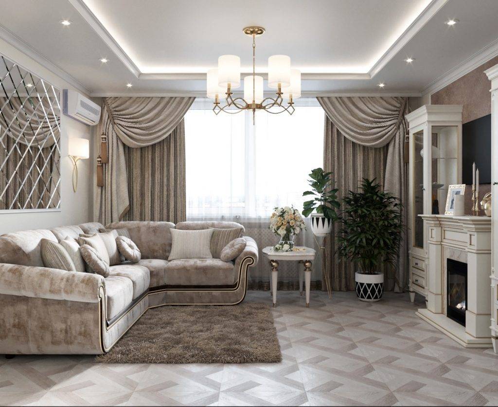 Высокий потолок позволит выполнить многоуровневые конструкции со встроенными светильниками. Они сейчас не очень модны, но могут смотреться органично.