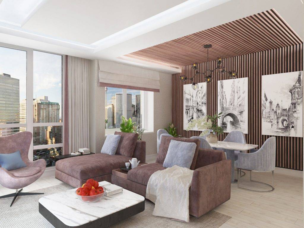 Если потолок не очень высокий, не больше 2600 мм, придется ограничиться встроенными или накладными лампами, скрытой подсветкой или даже одной настенной.