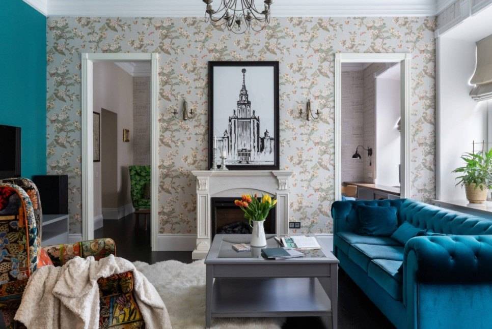 Варианты отделки стен гостиной обоями с цветами
