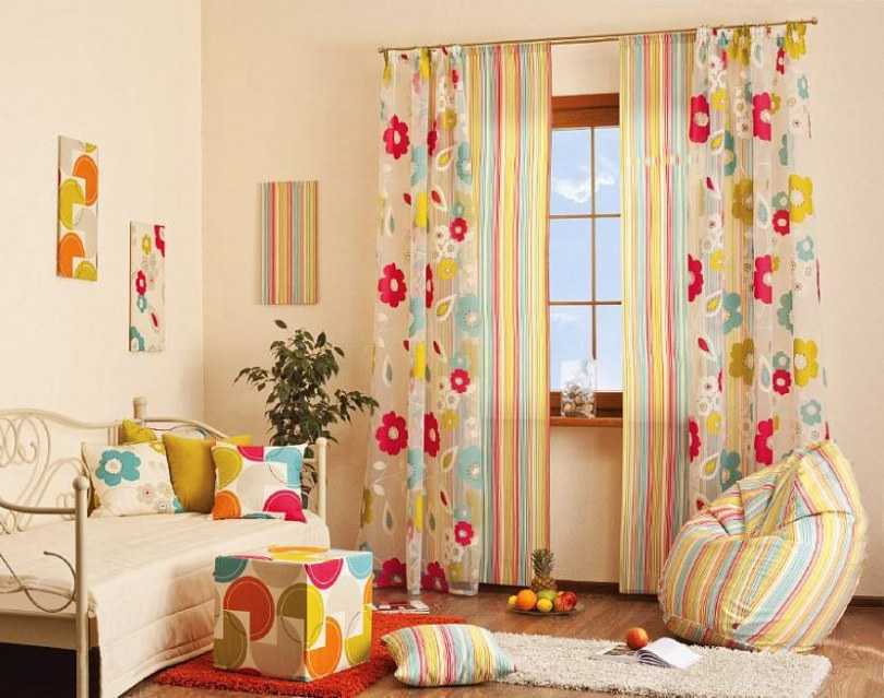 1 Фоновый цвет штор должен соответствовать интерьеру: быть либо в тон стенам, либо акцентным и дублировать цвет некоторых деталей обстановки.