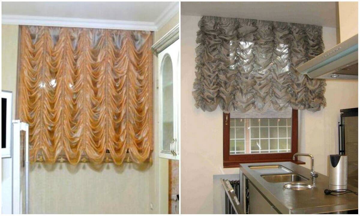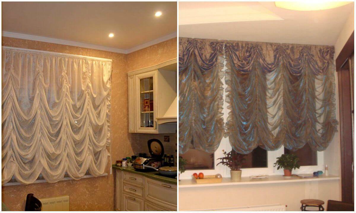 Шторы разных моделей в кухне.