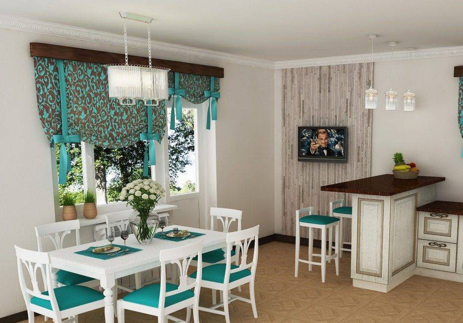 Для кухни лучше выбирать сдержанные занавески, а в интерьер спальни и гостиной вполне впишется некоторая помпезность.