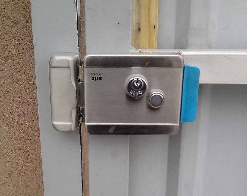 Электромагнитные замки довольно часто встречаются в специальных магазинах и организациях, занимающихся системами контроля доступа. Принцип их работы в том, что при подаче на него напряжения срабатывает электромагнит, который притягивает к себе калитку или створку ворот. Причем притяжение происходит с довольно большой силой, и без спецтехники открыть такие ворота практически невозможно.