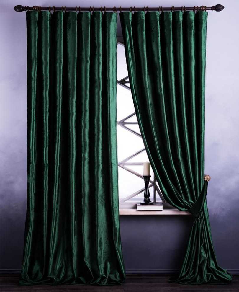 Нельзя использовать темно-зеленые плотные ткани в темном помещении, и напротив, они хорошо будут смотреться в гостиной, выходящей на солнечную сторону. Часто шторы подбирают таким образом, чтобы они сочетались с какой-либо деталью интерьера – обивкой мебели, скатертью, ковром.