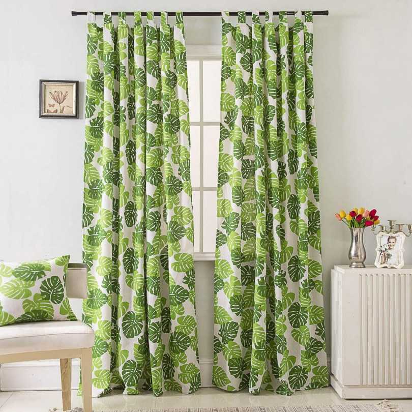 На занавесках из легкой ткани отлично смотрятся светлые оттенки: шартрез, фисташковый, лайм, салатовый и даже неоново-зеленый. Можете ограничиться полупрозрачным однотонным тюлем или подобрать растительный орнамент.