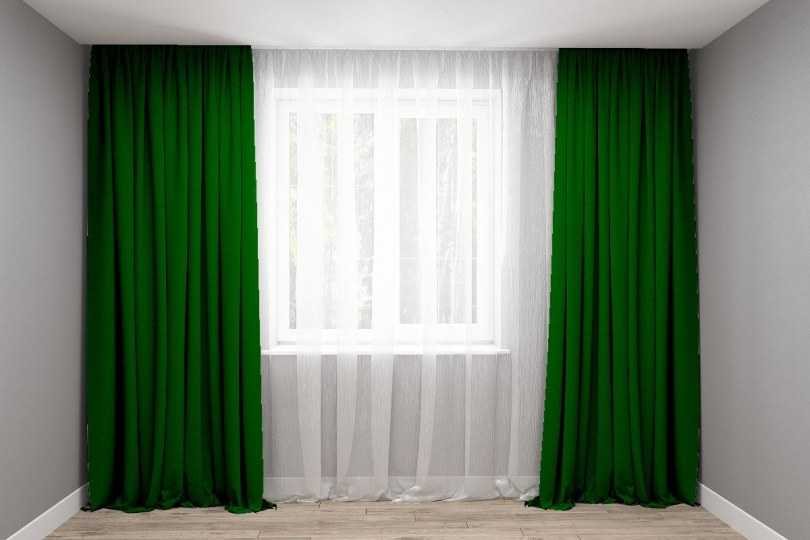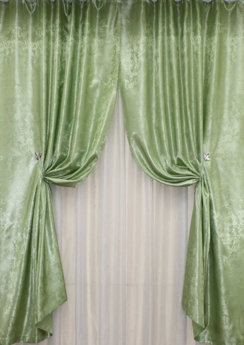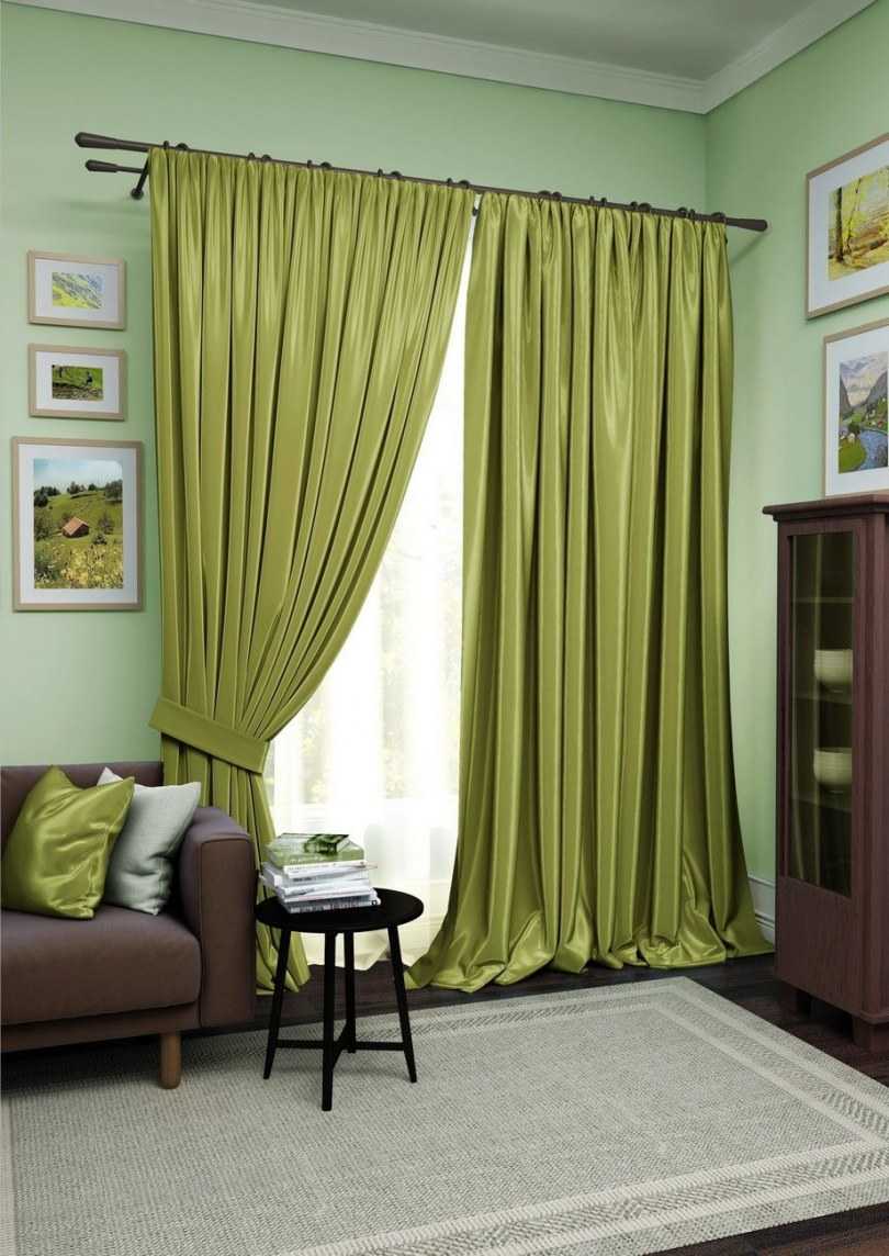 Однако зеленые шторы в интерьере гостиной или спальни должны гармонировать с другими материалами