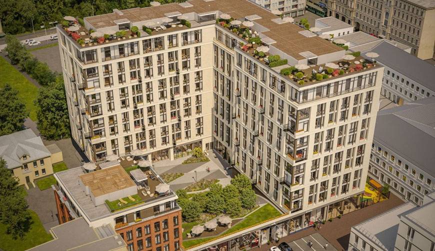 Корпус Heritage с отделкой из исторического кирпича высотой в 5 этажей, в нем всего 12 квартир и 3 пентхауса.
