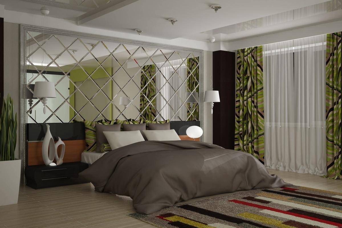 Грамотно подобранные отражающие поверхности формируют по-настоящему интересный и самобытный дизайн спальной комнаты