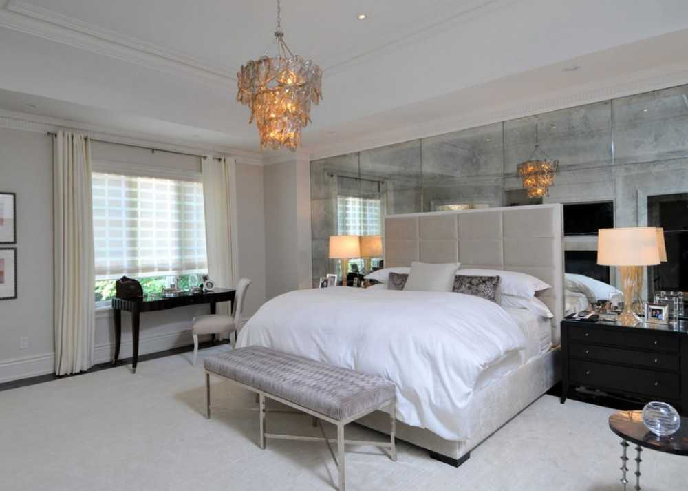 Еще как альтернатива варианту размещения зеркала вдоль стены, возможно разместить зеркало над кроватью в спальне, такой дизайн всем известен и давно используется, к тому же так возможно добавить больше “воздуха” пространству вашей комнаты.