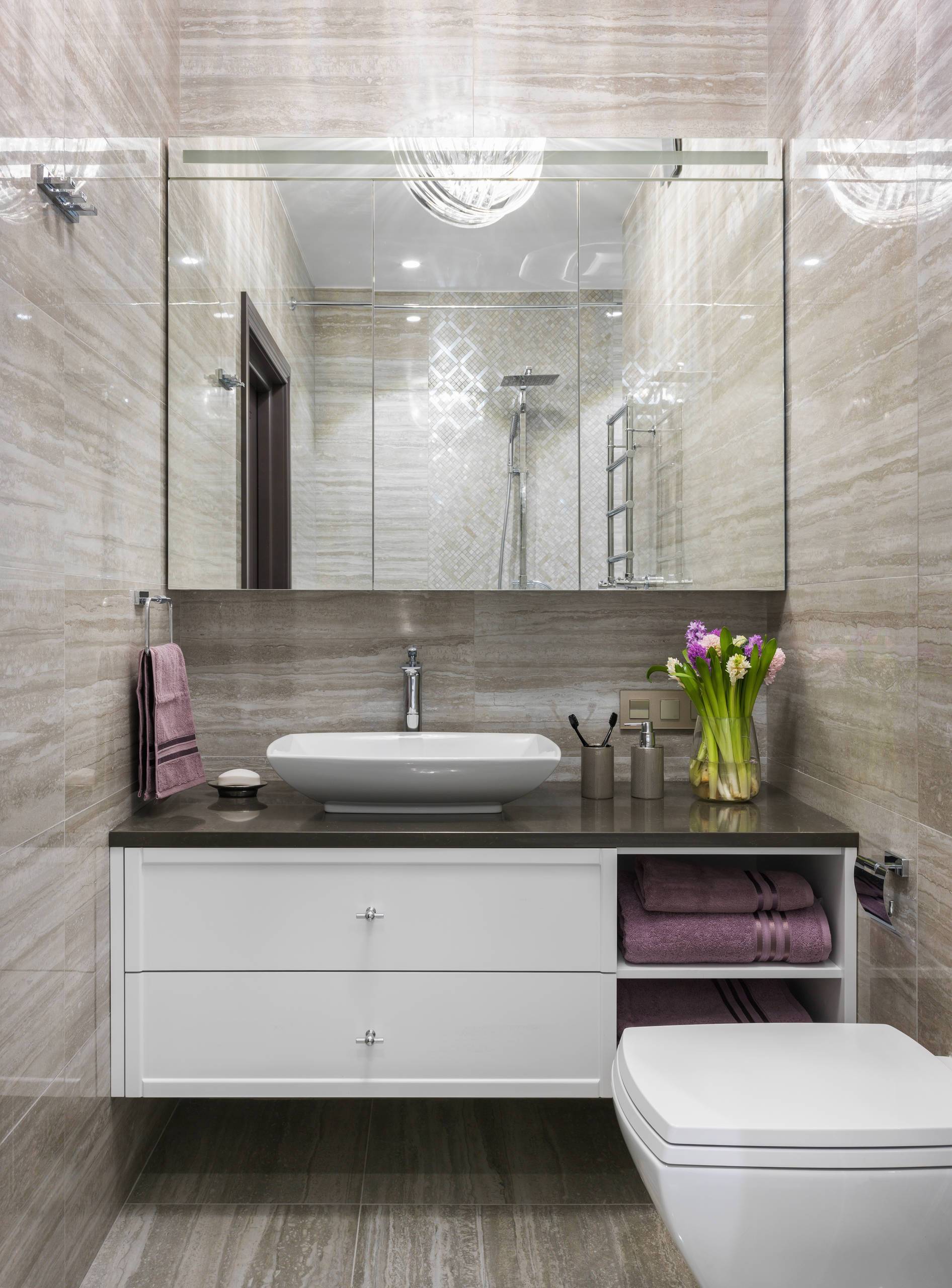 Здесь уместно хранить щетки, зубную пасту и косметику: удобно, когда всё под рукой для того, чтобы привести себя в порядок.