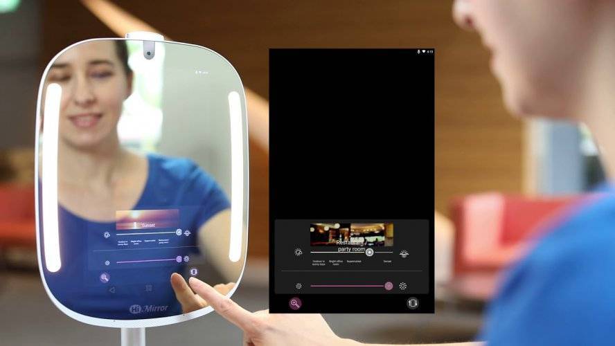 - Он регулирует свет благодаря встроенной интеллектуальной светодиодной подсветке. Само зеркало регулирует яркость и температуру света, чтобы сделать макияж более легким, а эффект заметным. Также вы можете выбрать один из пяти готовых сценариев освещения, которые также пригодятся для получения идеального селфи.