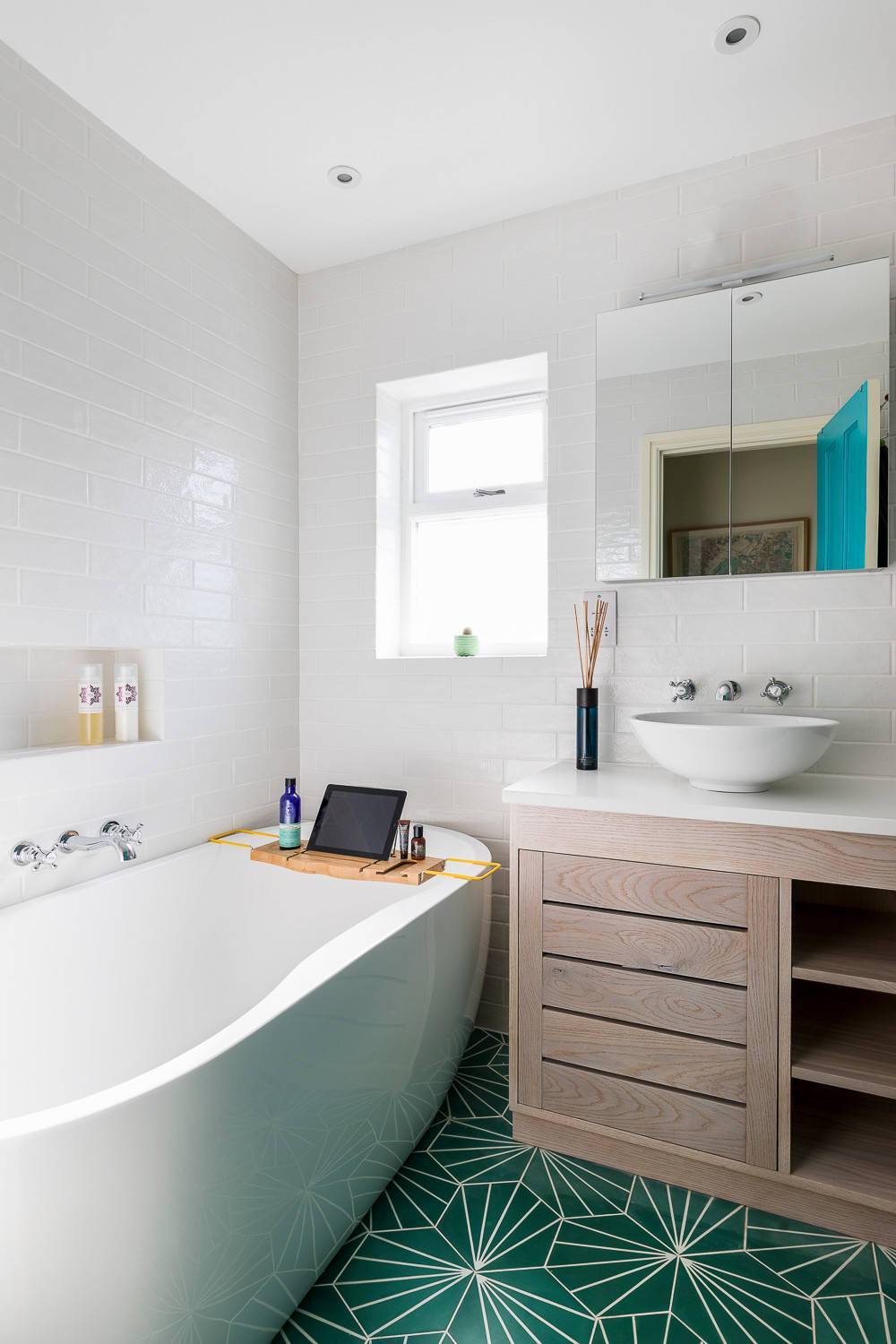 На фото ванная, не имеющая закрытых мест хранения, при этом комната не выглядит загроможденной.