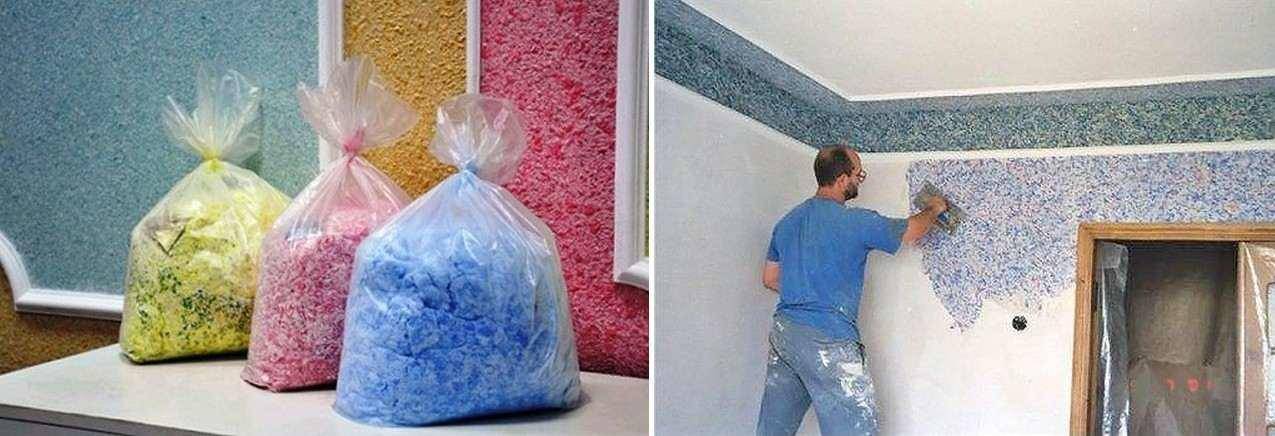 Целлюлозная смесь, из которой состоит отделка ровно ложатся на стену, хорошо устраняет мелкие дефекты и неровности на поверхности стены. Это существенно упрощает и ускоряет отделочные работы, позволяя обработать стены только грунтовкой.